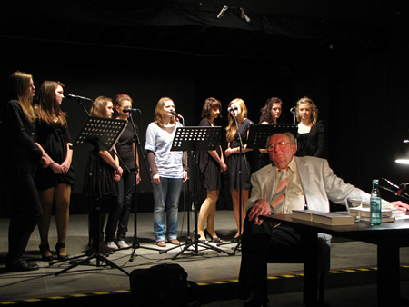 Doch auf der Bühne, an seinem Lesepultsitzend, versprühte der Autor eine solch ungeheure Freude am gesprochenen Wort, die ansteckte und anrührte. Eingeladen zu der Lesung hatte das Unterrichtsprojekt „Kohlengräberland“. Viel Lob hatte Reding für das neunköpfige Zeitgeist-Ensemble mit Leiter Ulrich Kind, welches den musikalischen Rahmen für die Veranstaltung setzte. Nach der Lesung ließ sich Reding, der von seiner Frau begleitet wurde, noch viel Zeit für Gespräche. Er versprach bald wieder zu kommen, sofern seine Gesundheit ihm dies ermögliche. Schade nur, dass nicht mehr Publikum die Gelegenheit genutzt hatte, noch einmal einem der letzten großen Erzähler zuzuhören. So blieben leider noch einige Reihen in der Aula frei.