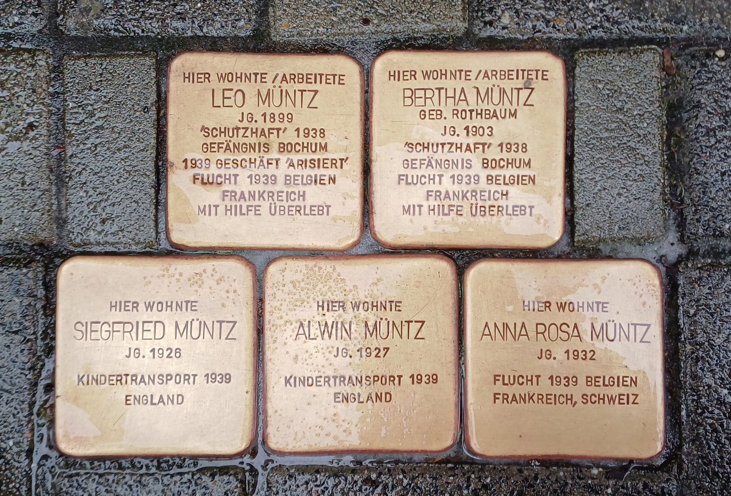 Bei einem Rundgang besuchten wir die ehemaligen Wohn- und Geschäftshäuser unserer jüdischen Mitbürger in Bochum-Gerthe, die dem NS-Terror vor Ort zum Opfer fielen und reinigten dort die Stolpersteine, die an das Schicksal der Familien Ruben, Fröhlich, Reiß, Rosenthal, Ortheiler, Müntz und Rossbach erinnern.