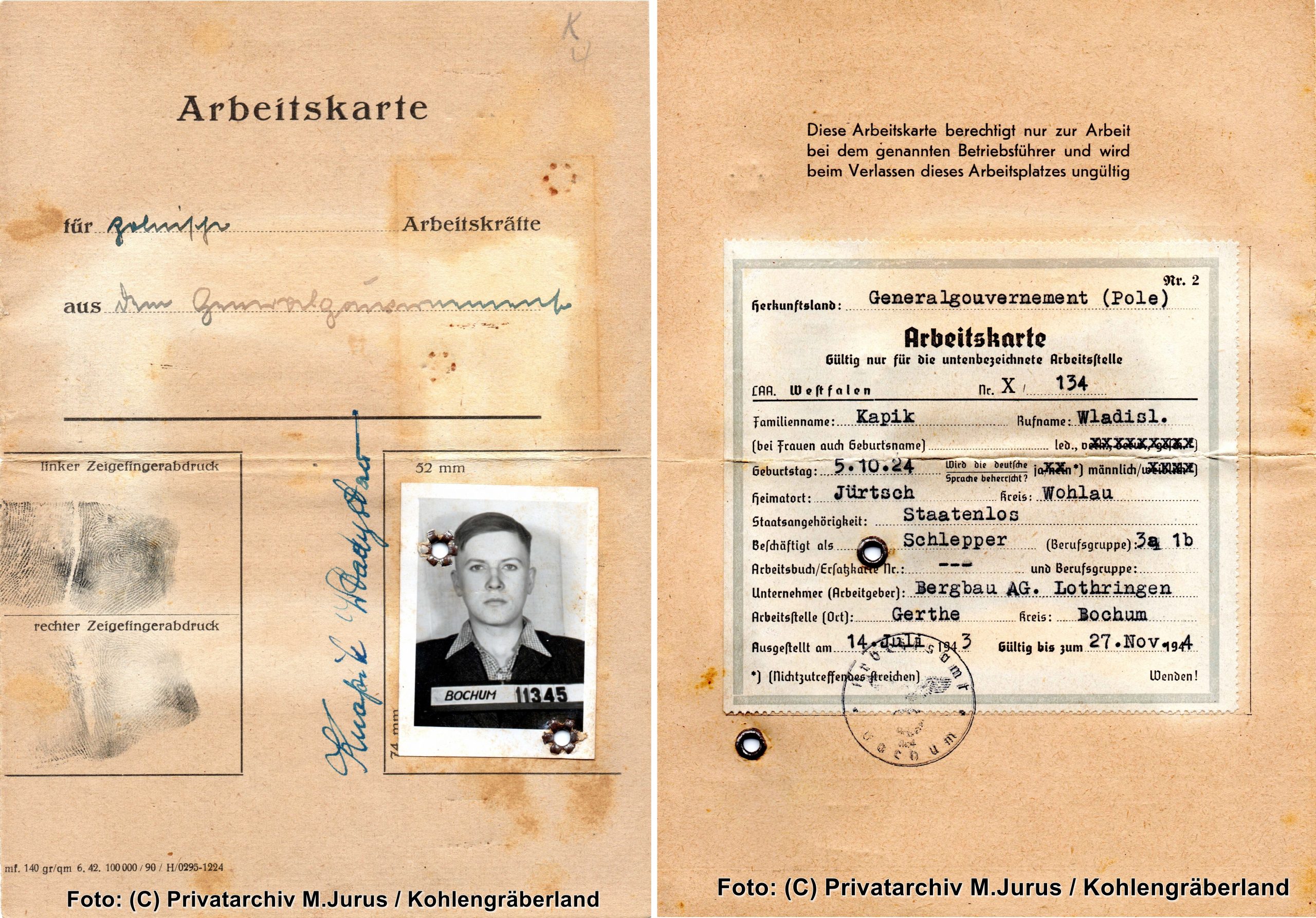 Wladyslaw Knapik wurde 1942 als 18-jähriger Bauernsohn aus Polen nach Bochum-Gerthe deportiert, wo er bis April 1945 unter Tage als Zwangsarbeiter für die Zeche Lothringen schuften und im Lager unter menschenunwürdigen Bedingungen leben musste.