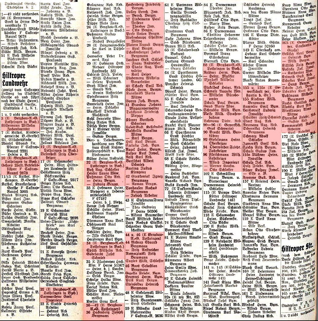 Ein Blick in das Adressbuch der Stadt Bochum aus dem Jahr 1932 verdeutlicht, wie viele Wohngebäude – neben den Privat- und Geschäftshäusern – sich im Eigentum der Zechengesellschaften „Lothringen“ und „Gewerkschaft Constantin der Große“ befanden.